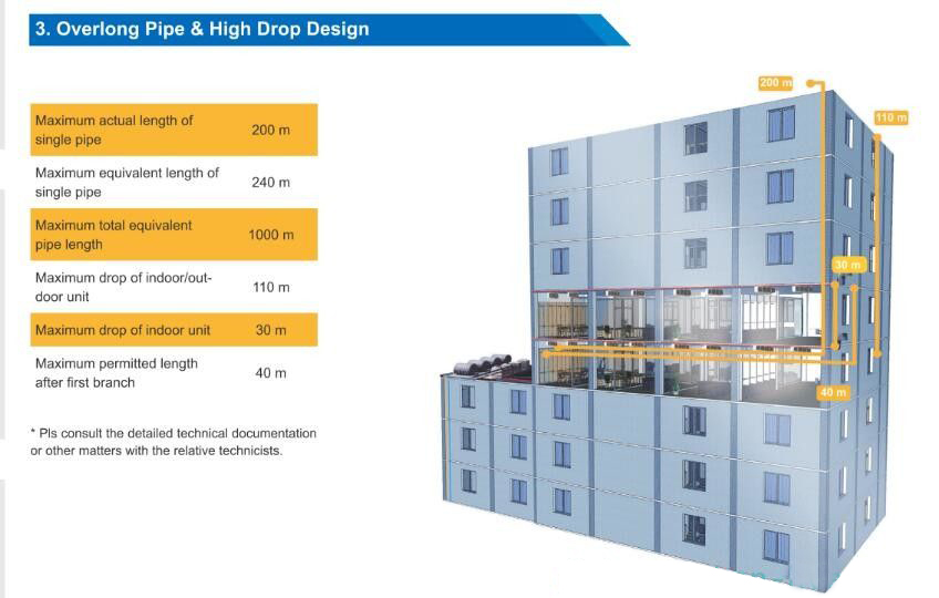 D. En el modo de calefacción, COP puede alcanzar hasta 4,37, con un COP promedio de 3,96;4. Diseño de tuberías largas